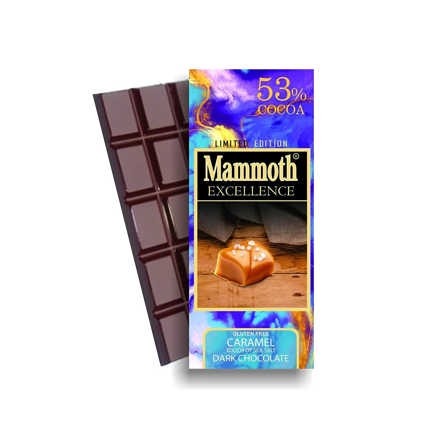 Savor the art of contrast with 53% Dark Chocolate with Caramel & Sea Salt – indulgence with every bite.