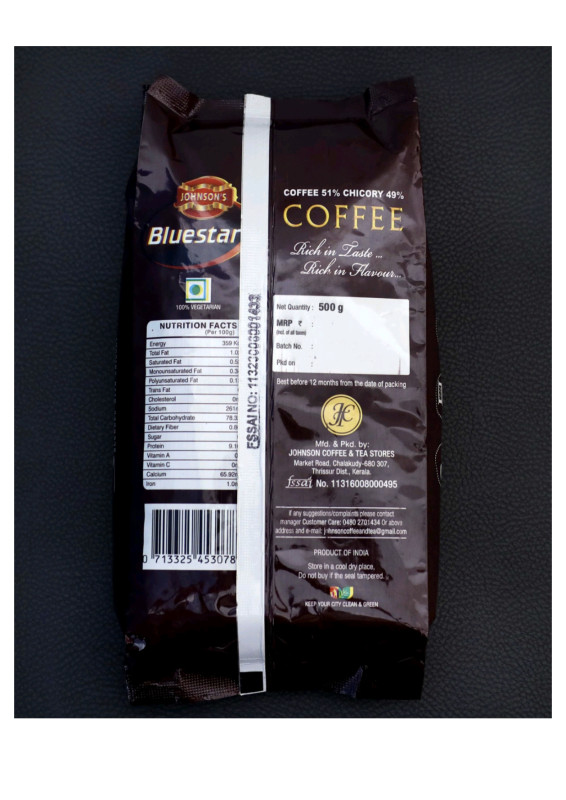 Bluestar Coffee is a robust and aromatic South Indian-style blend, made from carefully selected roasted coffee beans, finely ground to deliver a strong yet smooth cup. Ideal for filter coffee, drip brews, or espresso-style preparations, this blend offers a rich flavor profile with hints of roastiness and a bold finish. Whether you like it black or with milk and sugar, Bluestar Coffee gives you a satisfying, energizing start to your day.