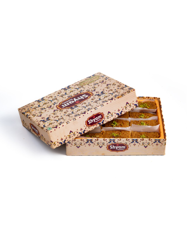 Milk Cake (Alwar Wale) is a legendary Indian sweet that originates from Alwar, Rajasthan, known for its rich, caramelized taste and signature grainy texture. Made by slow-cooking full cream milk and reducing it over hours with sugar and a touch of ghee, the sweet naturally develops a brownish gradient and deep flavor as it sets. A symbol of traditional Indian mithai craftsmanship, this version of milk cake is dense, mildly sweet, and perfect for both everyday indulgence and festive gifting.