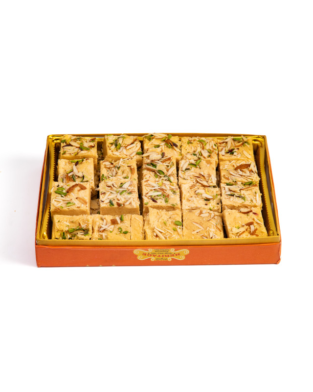 Patisa is a traditional Indian sweet known for its soft, flaky texture and rich, buttery taste. Made from roasted gram flour, pure desi ghee, and sugar, this classic mithai is often garnished with cardamom and chopped dry fruits to enhance its flavor and aroma. Light yet indulgent, Patisa is perfect for festive boxes, everyday enjoyment, or sharing with loved ones during special moments.