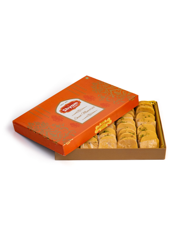 Patisa Roll, also known as Soan Papdi Roll, is a beloved North Indian sweet made by slow-cooking gram flour (besan) in ghee and sugar, then rolled into light, flaky layers that melt in your mouth. Delicately topped with cardamom and chopped pistachios or almonds, each bite offers a fine balance of richness and texture. Ideal for gifting during festivals like Diwali or Raksha Bandhan, Patisa Roll is a timeless treat rooted in tradition.