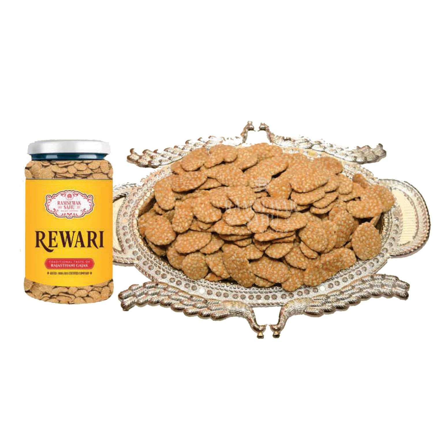 Enjoy the traditional crunch of Rewadi, a beloved Indian sweet made with roasted sesame seeds (til) and pure jaggery. Known for its bite-sized shape and rich nutty sweetness, this classic delicacy is especially popular during winter and festive celebrations, offering a wholesome and nostalgic taste in every bite.