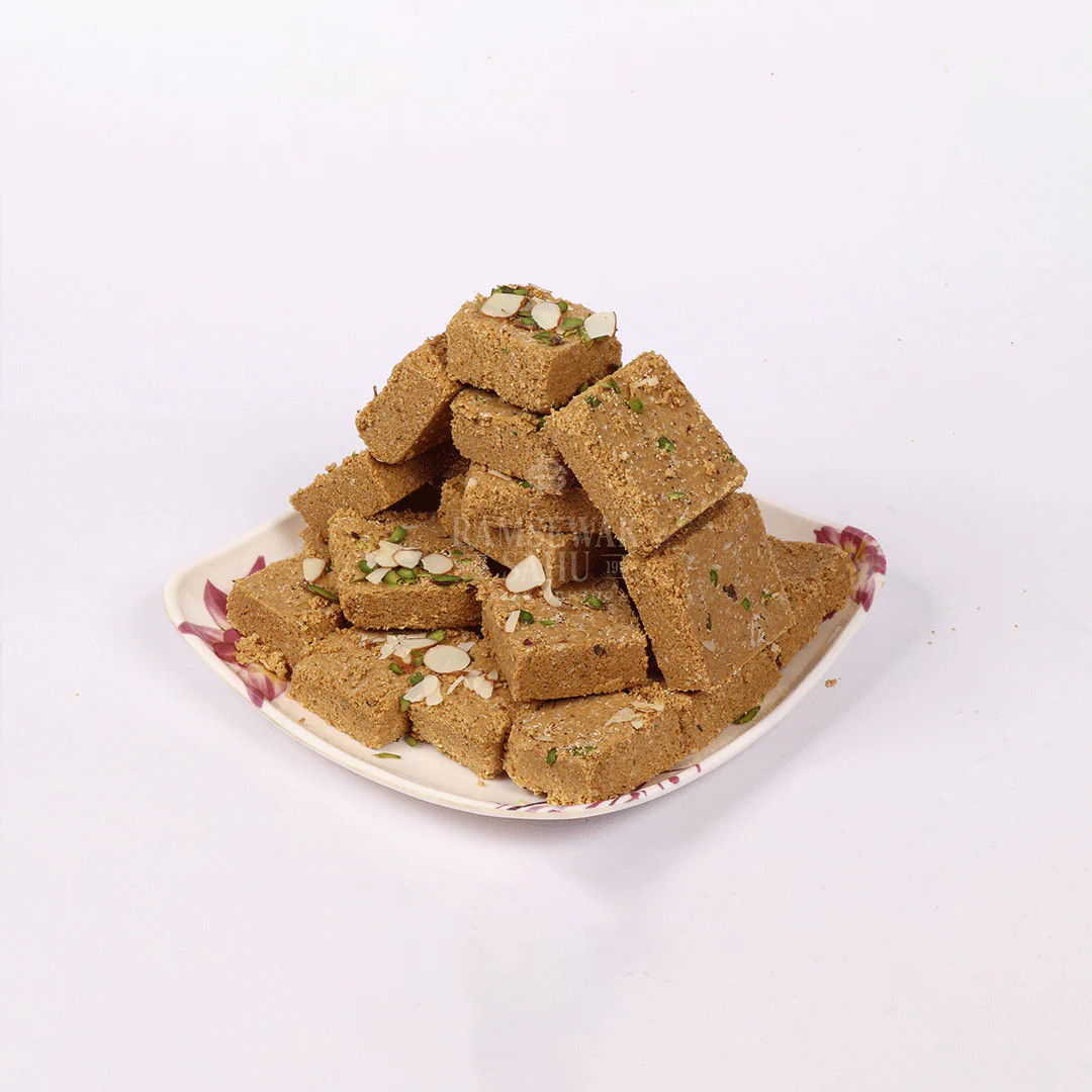Relish the wholesome richness of Til Barfi, a traditional Indian sweet made with roasted sesame seeds (til) and pure jaggery. Known for its dense, melt-in-mouth texture and nutty aroma, this classic delicacy is especially loved during winter and festive celebrations for its authentic taste and nourishing goodness.