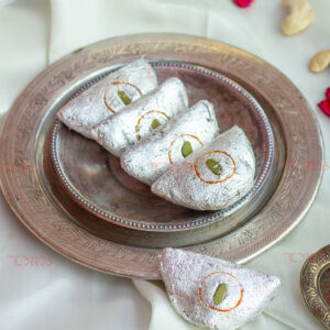 Celebrate the grandeur of Indian festivals with the exquisite taste of Kaju Gunjia.