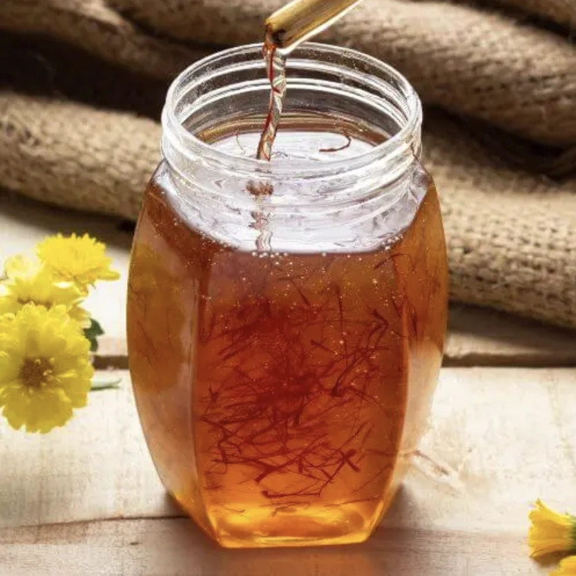 Experience the golden luxury of Kashmiri Saffron Infused Honey in every spoonful